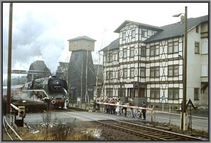 Aber dann die Ausfahrt des Zuges! Bullernd geht es an einem alten Bergbauschacht, jetzt Museum, und an dem für DDR-Verhältnisse annehmbar restaurierten