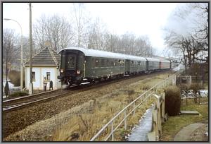 Schnell hinter die Bahnhofsausfahrt! In der hereinbrechenden Dämmerung verläßt der Sonderzug mit geringer Verspätung Wasungen. Ich hoffe, der Aufenthalt