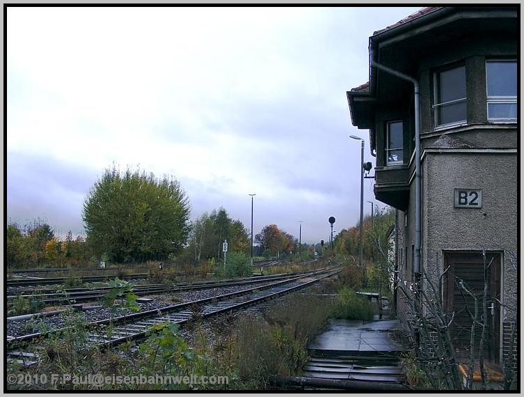 Da sieht das am anderen Ende des Bahnhofs wesentlich schöner aus! Stellwerk B 2 stellt die Weichen für Ein- und Ausfahrten in Richtung Hoyerswerda und auch von und zur Berlin-Görlitzer Bahn. Auch der Ablaufberg befindet sich auf dieser Seite,