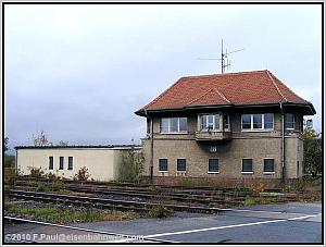 Schön ist es nicht, das Stellwerk "W 1" in Horka Gbf. Zwar mit mechanischer Technik ausgestattet, sieht es eher wie ein Neubau eines vielleicht kriegszerstörten ? Vorgängers aus.