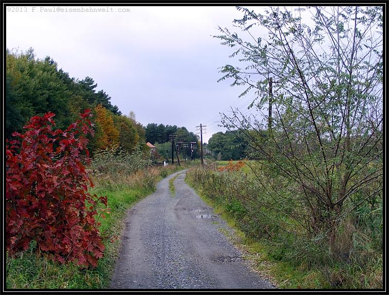 Weiter nach Osten wird aus dem Feldweg die ehemalige Ladestraße. Heute ist davon nur noch ein kopfsteingepflasterter Weg durch die Natur übriggeblieben. |