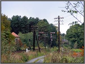 Aus Richtung Westen nähere ich mich dem Bahnhof Klitten. Als erstes sind ein Bahnwohnhaus und das Einfahrsignal F auszumachen. Hoch überragt es die Strecke, gut sichtbar für die herannahenden Züge. |