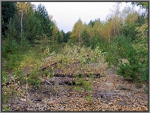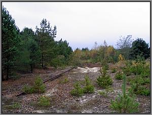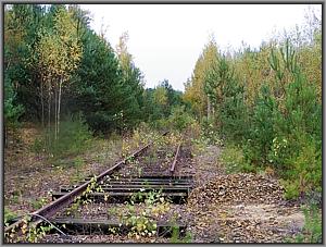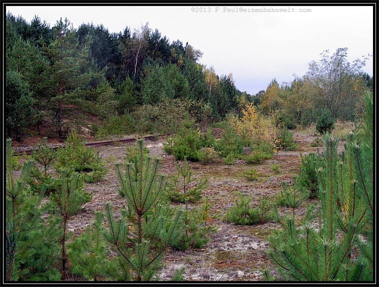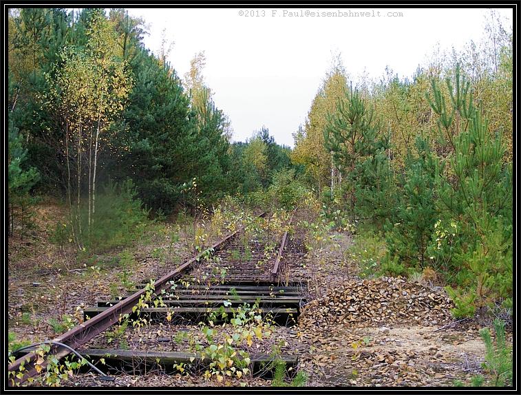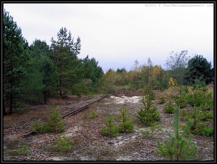 Ein asphaltierter Weg führt um den Wald herum, an dessen Ende ich wieder auf das Gleis stoße, bzw darauf, was von ihm übriggeblieben ist. |