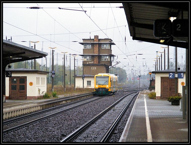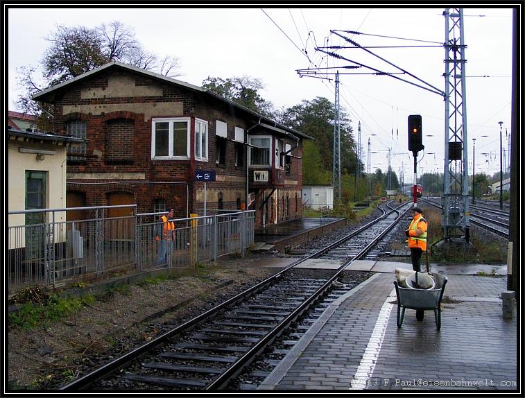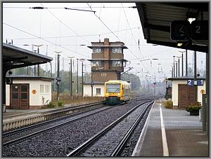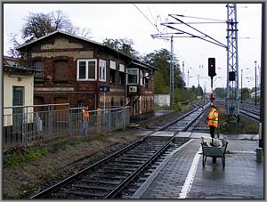 Am Ostkopf des Bahnhofs Hoyerswerda befindet sich in Seitenlage das Stellwerk W 1. Mit mechanischer Technik Bauart Jüdel werden hier Weichen und Signale gestellt. |