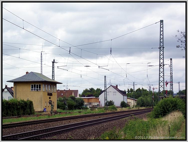 Etwas versteckt hinter Strauchwerk präsentiert sich am 12.08.2011 das Wärterstellwerk 1 des Bahnhofs Breitengüßbach.