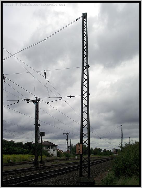 Stilleben mit Oberleitungsmast: Nur die Kilometertafel stört....(links).