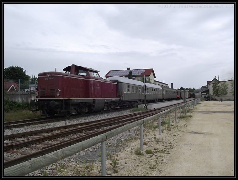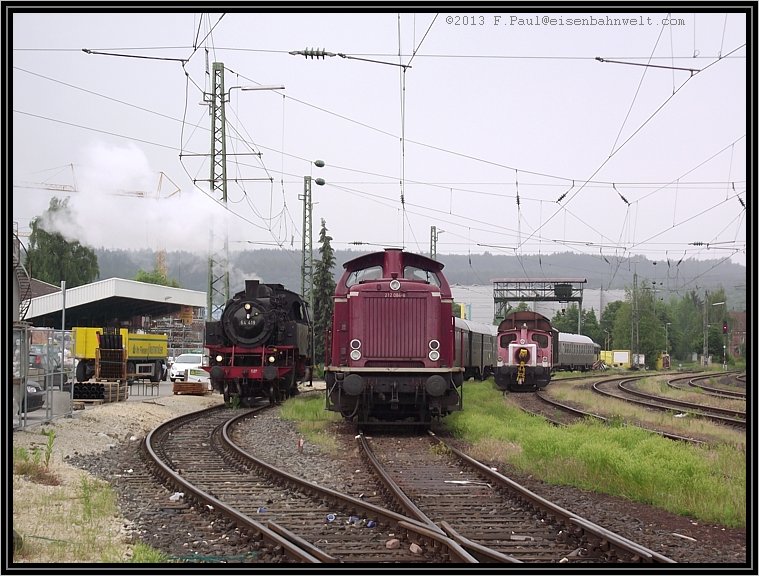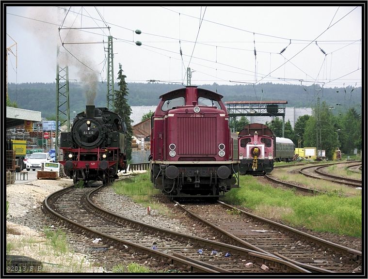 am Morgen des 10.06.2012 am Schorndorfer Bahnhof: 64 419 und 212 084 genießen die Ruhe vor dem Sturm, beide Loks werden am heutigen Tag den Sonderzugverkehr auf der Schwäbischen Waldbahn