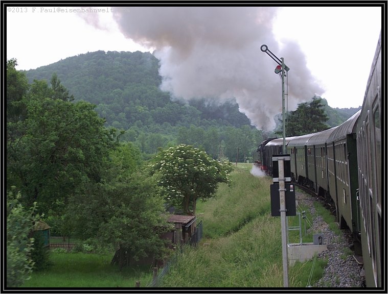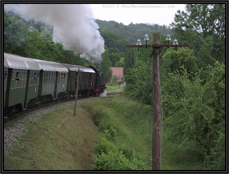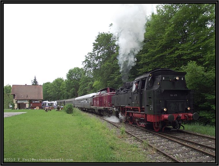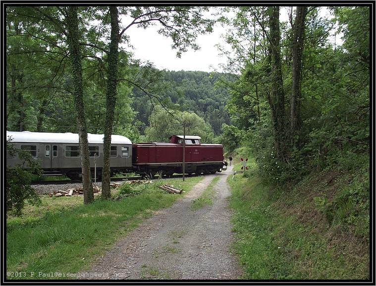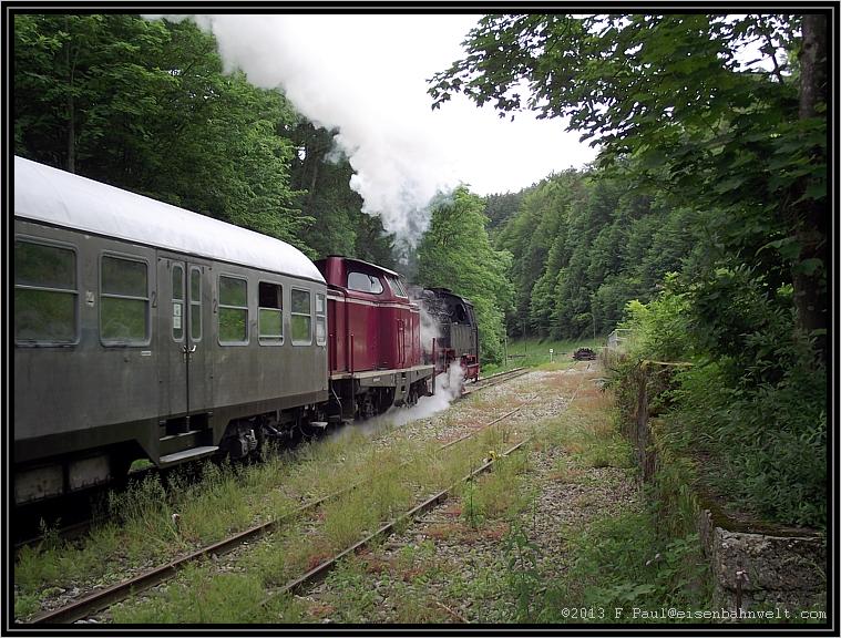 Und wenn dann unbedingt eine Diesellok mitfahren soll, dann muß man das eben akzeptieren. Immerhin wird die Stecke ab Rudersberg recht steil! |