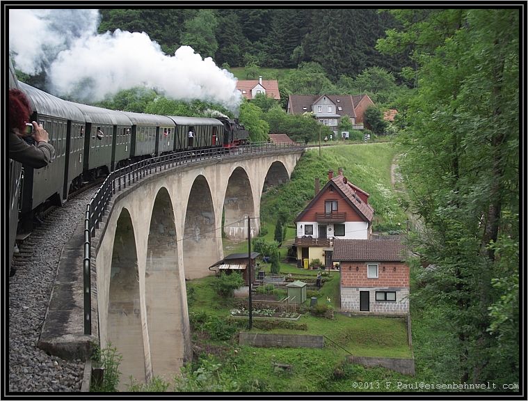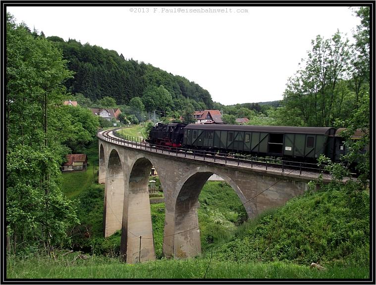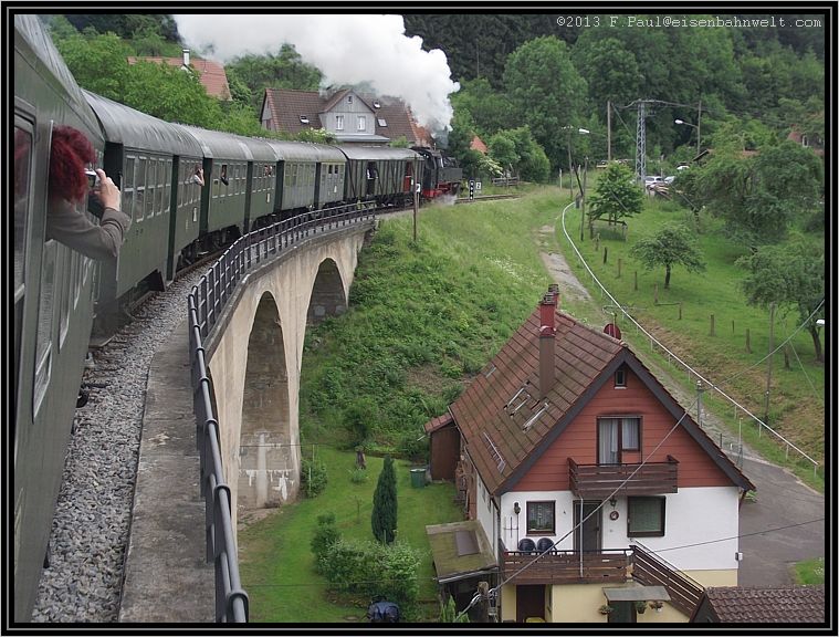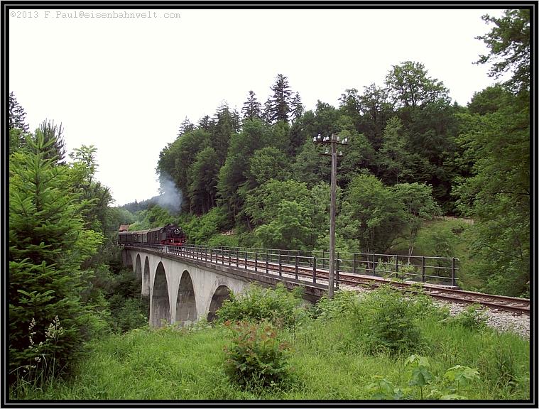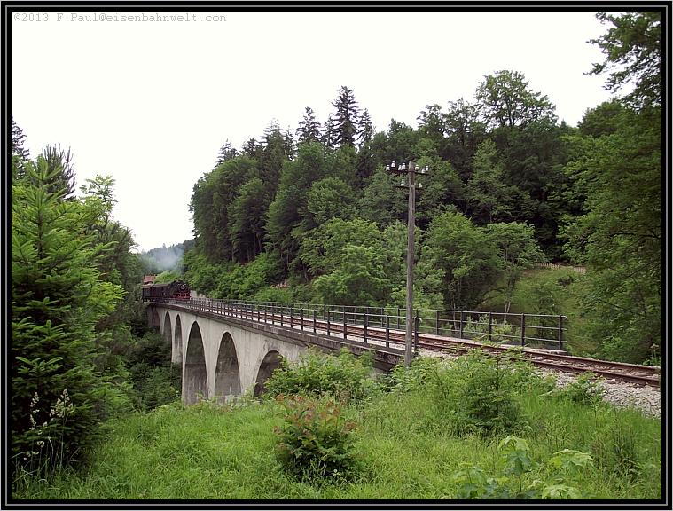 dem wenig später erreichten Laufenmühle-Viadukt, immerhin mit einer Länge von 168 Metern wird u.a. ein Talkessel mit Wasserfällen überspannt. |