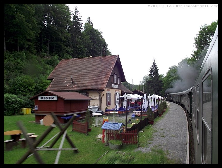 Der Hp Laufenmühle am Streckenkilometer 17 ist erreicht. Hier befindet sich wohl der touristische Höhepunkt der Strecke mit Gartenrestaurant,