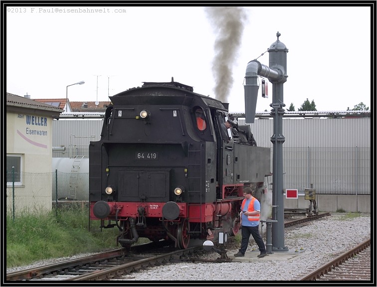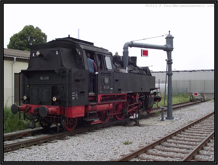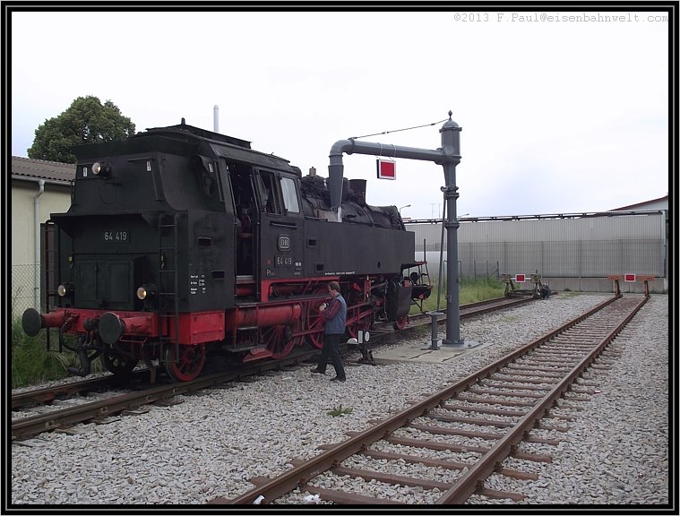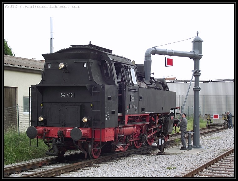 Ein Pfiff der 64'er ertönt und läßt mich zum Wasserkran zurück eilen. Der Ausleger hat den Lichtraum freigemacht,