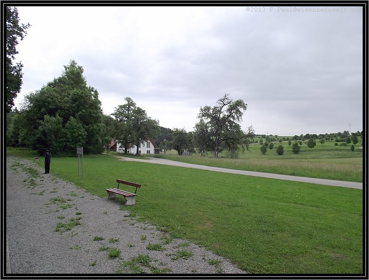 Ein Fußweg führt von der Talsohle zur Bahnstrecke hinauf. Allerdings soll sich hier eigentlich kein Bahnhof befunden haben. |