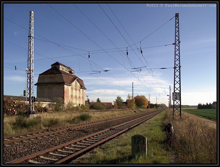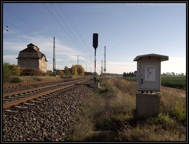 Saxdorf an der Güterzugstrecke Falkenberg/E-Röderau liegt am 18.10.2012 im Licht der Nachmittagssonne,