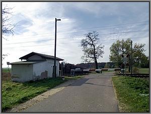 oder Fußgänger beim Herannahen von dieser Seite her bietet. Auch hier zwischen Wärterbude und Schranke: die Rufsäule. |