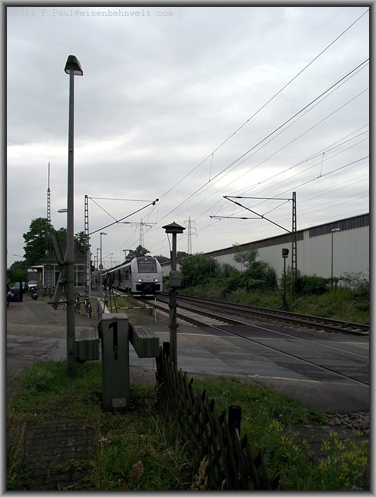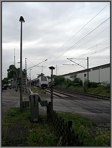 460 012 führt den zweiteiligen Triebzug an, welcher kurz darauf surrend den Bahnübergang befährt (Bilder oben).