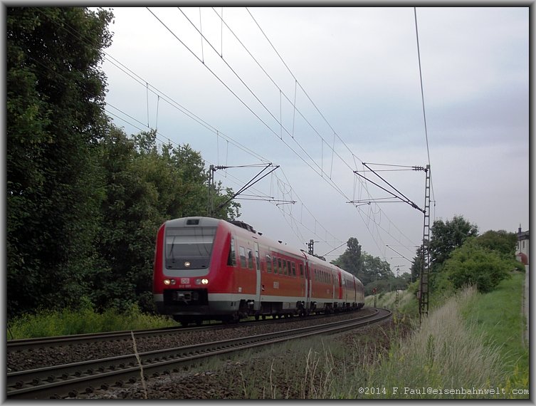 der nunmehr führende 612 007 legt sich kurz vor Heidesheim in die Kurve (Bild rechts). |