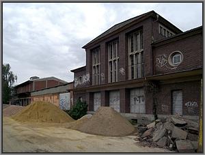 bedeutete auch die Aufgabe dieser Halle, da ihre Anbindung für große LKW nach Euro-Norm ungeeignet ist. Solche Hallen entstanden neu auf der grünen Wiese in der Nähe von Autobahnen. |