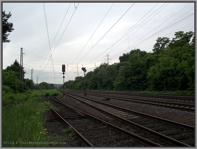 hinter welchem eine Weichenstraße verbliebene Überholungs- und Kreuzungsmöglichkeiten verheißt. |