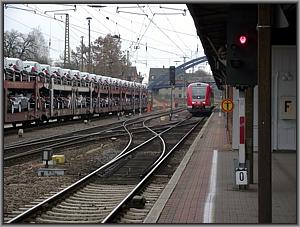 Am längsten Bahnsteig Deutschlands (Die Gleise 6s und 6n liegen in einer Linie) wartet er nun