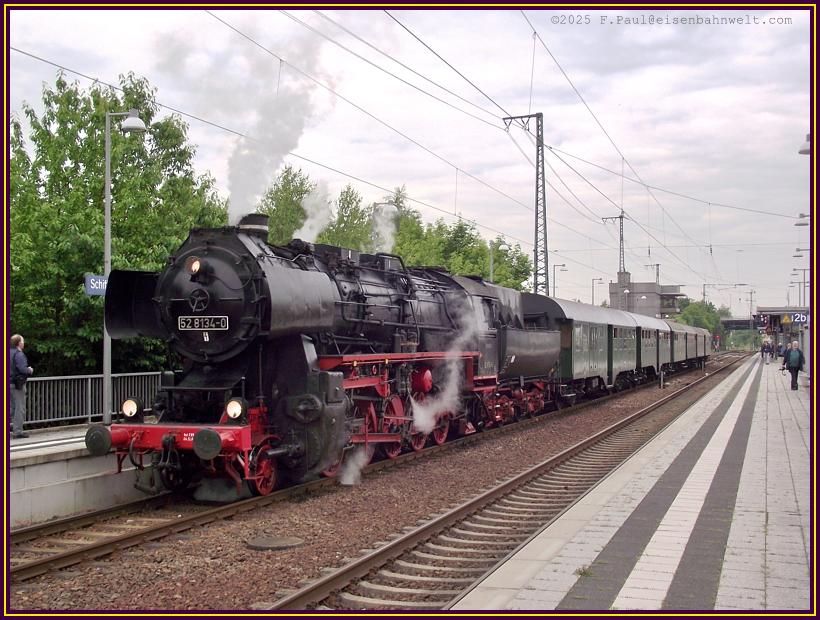 Es ist Sonntag, der 01.06.2014 in Schifferstadt: Von Neustadt (Weinstraße) her nähert sich 52 8134, eine alte Kamenzer Lok, zu diesem Zeitpunkt den Eisenbahnfreunden Betzdorf