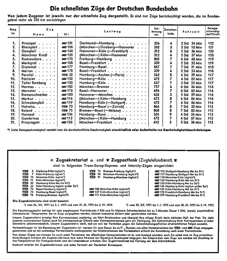 Die schnellsten Züge / Verzeichnis der Zugsekretariate