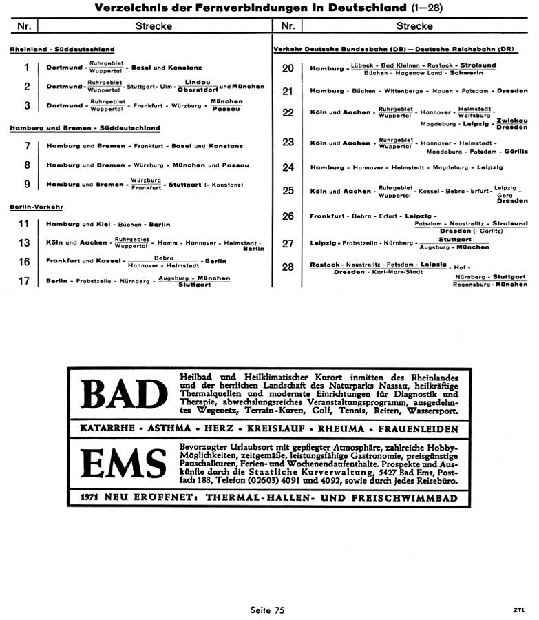 Verzeichnis der Fernverbindungen in Deutschland - Teil 1-28 Durch Klicken können Sie zur Fahrplantabelle 1 gelangen.